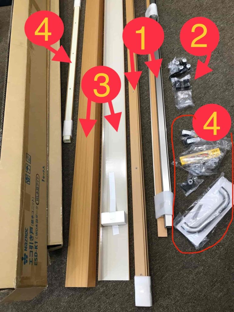 私も作業しながら気づいたんですが、引き戸にすると隙間はけっこうできるので、付属品がかなり重要になっていきます。
